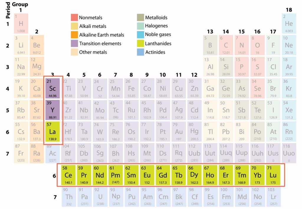 Periodic Table Highlighting Rare Earth Elements (REEs)